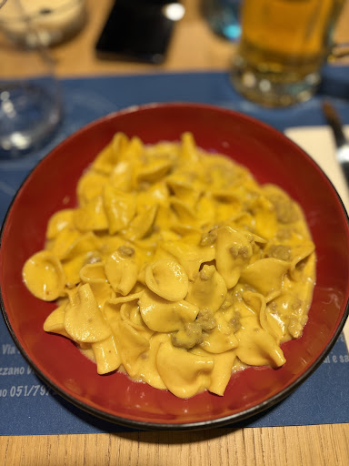 Un posto eccezionale! Siamo andati a cena e ci hanno dato subito un tavolo, nonostante il ristorante fosse pieno e con un’atmosfera davvero piacevole. Il cibo era delizioso: i piatti che ci sono piaciuti di più sono stati gli “Imbutini ozzanesi in crema di parmigiano e zafferano con salsiccia” e la “Tagliata di picanha” —da provare assolutamente! Abbiamo anche assaggiato una lasagna alla bolognese proposta fuori menù per quel giorno e un’insalata caprese molto saporita. Il proprietario è stato molto simpatico e le cameriere si sono impegnate per comunicare con noi in inglese e spagnolo, cosa che abbiamo apprezzato moltissimo. Ci è piaciuto tantissimo il posto, e in più si trovava a soli 100 metri dal...