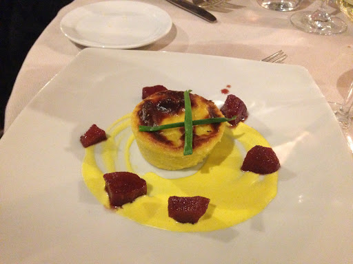 Nel frattempo ci viene portata una bottiglia di vino aperta e lasciata lì, senza la consueta richiesta di assaggio o cestello con ghiaccio che per fortuna chiediamo dopo poco dato che l'attesa per la portata successiva sarà di oltre 1 ora.