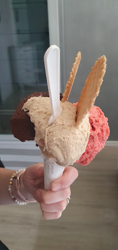Un mese fa avevo provato a prendere un gelato alle 12:30 ma nonostante ci fosse un cartello APERTO non c'era l'orario ed era CHIUSO. Stasera ho avuto la possibilità di "assaggiare" perché era impossibile finirlo (gettato nel cestino...salvo il cono/biscotto)un gelato imbarazzante per qualità; senza consistenza, ghiacciato (per farlo stare "su") senza cremosità, sapore insipiente...veramente difficile trovare di...
