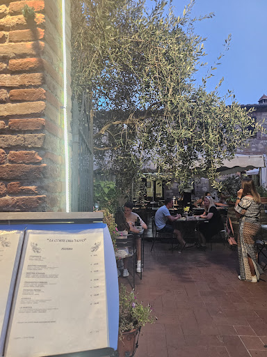 La Corte Dell Ultivo meaning The court yard of the Olive trees, but at this restaurant you can't get a fresh bottle of olive oil only packets of Olive oil. August 5, 2021, A beautiful outdoors atmosphere and it ends there. There were adults three a toddler dining and we were served exactly Three Slices of Dry Bread and three packets of tasteless olive oil in a outdoor restaurant was surrounded by olive trees in the middle Montepulciano, Italy renowned for Italian food and olive oil. At this point I felt as if I was on a airplane with the packets of olive oil. We were charged 10% for the table cover charge called Coperto, but the table was covered with with paper placemats. We order bruschetta to share called Fantasia di Crostini with different toppings. We cut bruschetta in half to share. The toppings were cold and soggy, the 3 of us including the Italian baby couldn’t finish a small half slice of the bruschetta. Insalata Mista which is The Salad this was on a small plate of non-descripted lettuce and 3 thinly slice tomatoes no mix lettuce. The dinner ordered was Ravioli con Burrata and Tagliate zucchine e pe corino. The entire meal was tasteless, the Ravioli was cold and fill with water inside the cooked Ravioli. The Tagliatelle or flat spaghetti in cream was cold pasty, sticky and mushy sauce that appeared to have been sitting for a while. When I put my fork in to take a portion one solid glob of the entire dish came out on my fork. We were also served 3 plastic packets parmesan cheese that was perspiring in the plastic packet and tasted rancid. This entire shared meal was not edible we eat a couple of bits a left. It was a waste of time to complain, for the service was bad where the servers seem to be indifference about the job like robots, they only took the order and sever the food, they basically had no emotion. The meal receipt was not brought to the table we had to ask how to check out and the waiter gesture to go inside. Once inside the elderly owner was confused with the several receipts in his hands and on his cell phone, he didn't once look at us or speak to us mannerly salutation. Luckily, we had a few leftover slices of pizza in our apartment to share amongst the 3 of us and the baby. My last thought on Court yard of Olives (la Corte Dell’ Ulivo) “If the Olive Trees knew the hands that planted them, Their Oil would become Tears” by Mahmoud Darwish. A sad last night in...