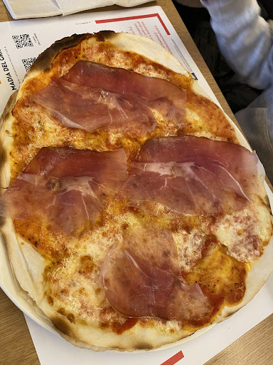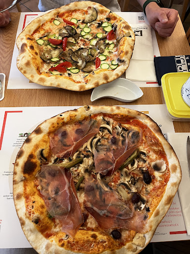 Read moreOp de positieve reviews, ook hier maar gezellig aangeschoven. Zonder reservering kregen we meteen een tafeltje toegewezen. Tussen de gezellige Italiaanse locals die met hun hele families leuk aanwezig waren, kreeg je meteen de authentieke Italiaanse sfeer er gratis bij. Wij werden geadviseerd over de vele verschillende biersoorten en kozen voor de chef's favoriet, die overigens echt echt heel lekker is. Het maken van een keuze uit het menu was nog niet zo makkelijk. Uiteraard alles in het Italiaans en mijn translater wist het blijkbaar ook niet allemaal te vertalen. We kozen daarom voor pizza's waar we de meeste ingrediënten van herkende. Mijn Pizza Stefano had pikante salami en gorgonzola. Die laatste kan behoorlijk overheersend zijn, maar Oooohhh wat smaakte mijn pizza voortreffelijk. De juiste hoeveelheid en verdeeldheid van de gorgonzola maakte mijn pizza perfetto! De ultra dunne, wat knapperige bodem geeft het een dikke 10. En dan het klapstuk wat de avond compleet maakte... Een tiramisu van hoogstaande Houte cuisine klasse! Nooit meer wil ik een tiramisu op andere wijze eten, dan deze variant. Hemels lekker! De warme espresso werd aan tafel over het chocolade kommetje uitgeschonken, en maakte het een meer dan uitstekend, superlekker jum jum hun gerecht. Hier moet je echt van willen smullen. 100% aanrader...