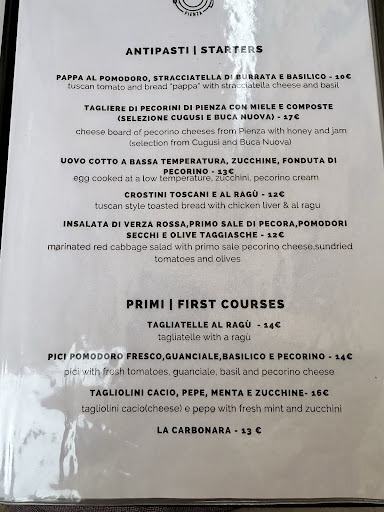 Read moreMy girlfriend and I stumbled onto this place after wandering through the stunning town of Pienza. Despite it being "off-season" we accidentally found this place at the top of a beautiful coblestone road and after peeking in, we were warmly welcomed by Christof. It's no exaggeration that this was one of the best meals of my life, if not the best. We had amazing Prosecco to start, and Christof gave us some interesting history of the place, his family, and some wise tips. He gave us a sample of three different kinds of olive oil and asked us to chose but frankly it was difficult, they were all outstanding. I started with the classic Cacio e Pepe. Upon my first bite my eyes rolled to the back of my head and almost didn't come back, yes, that good. My girlfriend had the carbonara and she had a similar reaction. Then he shocked me with some of the best Italian craft beer I've tasted. Chris has cool stories about his love of beer making and his new restaurant Prosit, which I have to try next time. Oh I forgot, the rack of lamb was sublime so get that too. You can't go wrong with anything on that menu I'm sure of it. So good I'm planning my trip back just to eat there. Thanks Christof (bravo to...
