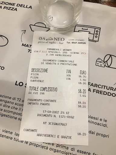 Locale pizzeria in quartiere molto vivo di Cesena costellato di tantissimi altri servizi (comprese pizzerie/punti ristoro). Nei pressi ampio e comodo parcheggio pubblico. Il locale è molto grande e proporzionato all’afflusso di clienti, dotato anche di tavolini in esterno. In inverno il locale è freddo nonostante sia una pizzeria (mai riscontrato altrove). Il personale è poco professionale e appena educato. Generalmente si fanno tutti i fattacci propri ed anche se si è attesa di pagare/ritirare, si viene lasciati per molto molto tempo abbandonati fintanto che i dipendenti non hanno terminato il loro discorso (lavorativo o meno). La disponibilità della cucina ad andare in contro alle esigenze del cliente è sostanzialmente nulla (richiesta di margherite alle 19.30 caduta nel vuoto con risposta molto maleducata urlata in modo sguaiato dalla cucina senza nemmeno affacciarsi in sala). Ho dato più possibilità al locale (esclusivamente per la nomea e per l’ottimo servizio ricevuto dall’omonimo Neo di Gambettola) ma ogni volta è stata una delusione. Non capisco come si possa dare più di 2 stelle (considerando anche i prezzi). Servizio assolutamente non adeguato al tipo di locale (e si tratta di una pizzeria al taglio da asporto quindi, partivo già con attese modeste). Poca attenzione ai clienti, personale che tira a finire la giornata. Purtroppo anche la pizza non è assolutamente di livello ed ancor meno adeguata al prezzo. Qualsiasi pizza acquistata è sempre immancabilmente fredda e sembra preparata da giorni. Il gusto del cibo è appena sufficiente, comunque piatto e direi preparato con materie prime di scarso livello (già riscontrabile ad occhio). Il tutto viene amabilmente accompagnato da una generale indolenza del personale. Non tornerò.