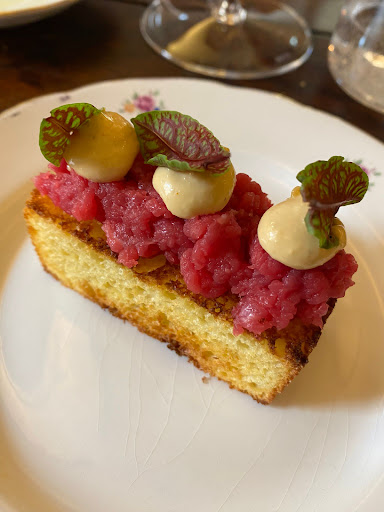• Zuppa di cipolle con formaggio Comté: calda, morbida e appagante. La dolcezza della cipolla, la cremosità della zuppa e il formaggio che filava davano vita ad un piatto semplice ma davvero degno di nota, qui l'obbiettivo del titolare di valorizzare gli ingredienti è stato raggiunto in maniera soddisfacente.