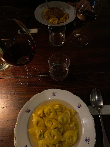 Osteria contemporanea che possiede un fortissimo legame con il territorio. Se da una parte ci troviamo tra le mura di un locale storico - con i suoi tavoli in legno giganti diversi fra loro, un bancone che ha sostenuto il peso di una miriade di gomiti nel corso degli anni - dall'altra ci troviamo di fronte ad un menù che non è "scolpito nella pietra": cambia, si evolve, si rinnova smantellando la classica divisione tra antipasti, primi e secondi, dando vita ad una sorta di "percorso" che si aggiorna costantemente, tra proposte di carne, di pesce e vegetali. La particolarità di questi posto la troviamo però nella cantina che con una grandissima varietà e quantità di etichette ci regala un bagaglio culturale enorme, bisognerebbe farsi trasportare dalla storia di ogni bottiglia, fare un viaggio attorno e dentro al nettare degli dei. . Intanto ci godiamo alcune bottiglie rare e introvabili sparse un po' per tutto il locale.