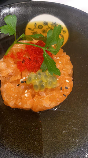 Read moreSinceramente sono stata attratta da tutte le recensioni positive ma quando sono entrata il locale era sporco, con tutte le foglie ammucchiate negli angoli. Ho pensato be' forse è che ora hanno molta gente e non riescono, comunque erano le 14 quindi il servizio era già in svolgimento da due ore. Purtroppo il cibo abbastanza scadente, il salmone era nero e rosa con una nota di acido, sembrava come se volessero reciclare il.salmone vecchio mischiandolo con quello nuovo, il sashimi viscido. In più c'è un rullo trasportatore ma che non serve a niente perché ci passano sopra edamame, pallini con sesamo sopra, un piattino con un dolcetto al cocco mangiucchiato.... l'unico sushi che passava era appunto quello con il salmone mezzo nero dentro, per forza se dovevano finirlo a tutti i costi...brutto. Il personale gentile ma è l'unica nota positiva del locale. Noi abbiamo lasciato il cibo lì e ce ne siamo andati, per fortuna non siamo stati...