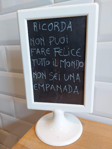 Questo piccolissimo locale è gestito da due persone squisite, così come lo sono le loro empanadas! Non conoscevo né il posto né il menù ma tornerò sicuramente perché queste specialità argentine sono davvero buonissime. Sono preparate in dieci varianti diverse per ripieno, a partire dalla carne passando per prosciutto e formaggio oppure verdure o salsiccia...tutte molto buone. Con il menù di 3 empanadas e la bibita (anche birra originale argentina) è possibile anche risparmiare un po' ma comunque il prezzo è ottimo. Purtroppo il locale è piccolissimo quindi ci sono solo alcune postazioni dove sedere per mangiare, ma offrono anche il...