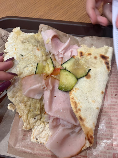 Read moreLa Piadineria è un piccolo locale all'interno del Complesso della Meridiana. Fa a mio parere un'ottima piadina - almeno per i miei standard da Bolognese, non sono Romagnolo 😜 - disponibile in diversi impasti e con una lunga lista di possibili farciture molto originali. Consiglio assolutamente di prendere l'opzione "rotolo", che costa 1.5 € in più ma permette di stra-riempirla e renderla molto più gustosa. I prezzi sono nella norma: con 8 € ho mangiato una piadina rotolo talmente farcita che sono arrivato alla fine molto pieno e soddisfatto. È possibile mangiare all'interno del locale su piccoli tavolini, oppure facendo una passeggiata nei dintorni. Nel complesso, consiglio assolutamente La Piadineria per un pranzo...