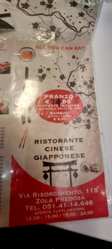 Read moreQuesto ristorante è stata una bella scoperta : il locale è di medie dimensioni, molto grazioso e familiare. È una sorta di fusion cinese e giapponese con formula all you can eat (pranzo €13.50!) con una scelta di piatti contenuta ma estremamente curata. Devo dire che ciò che ho apprezzato di più è che entrambe le categorie (cinese e giapponese) erano di alto livello, ho apprezzato moltissimo i classici involtini primavera (tra i più buoni mai mangiati), la zuppa di miso ottima (mio marito l'ha mangiata spesso in Giappone e sa riconoscerne i pregi) ma anche il sushi era ottimo. Ho trovato buono anche il caffè che nei ristoranti spesso lascia a desiderare. Infine il personale è gentilissimo, il ragazzo alla cassa (non so il nome) è stra simpatico e decisamente cino-bolognese. Ritornerò...