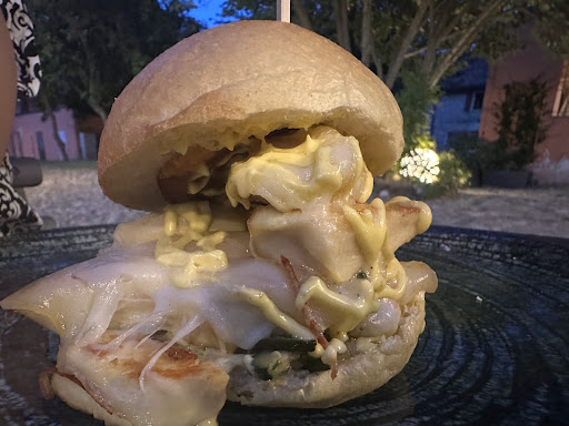 Read moreLa pubblicità sui social martella di brutto quindi proviamo Questo posto, in una calda sera d’estate. Ampio parcheggio, giardino esterno con due file di luci e tavolini ben distanziati. Ci accoglie una ragazza molto gentile ma siccome in leggero anticipo ci fa aspettare un po’. Interviene il titolare un po’ burbero 😠. Ci fanno poi accomodare e proviamo ad ordinare col QR code. Si ma date gas la connessione era lenta o il server .. fate un aggiornamento !! Infine ordiniamo, superando due prove tipo Asterix e le 12 fatiche. Veniamo premiati perché i burger sono ottimi. Ricette con molti ingredienti ma ben pensate, addirittura quello di pollo ci è piaciuto di più di quello di manzo! Prima volta che ci capita. Il contorno di patatine era un po’ piccolino ma buono. Il dolce che abbiamo preso non l’abbiamo capito (un misto di gusti, fresco ma senza una chiara indicazione a parte il cocco. In una calda sera estiva se volete scappare da Bologna è il posto giusto, si sta freschi senza troppe pretese. Alla cassa ritroverete il burbero 😠 che non riuscirà ad offrirvi un amaro nemmeno dopo che avete corretto il conto (si erano dimenticati qualcosina…) ma pazienza. 🤷 è fatto così. I burger meritano (forse sono solo un po’ piccolini se proprio vogliamo trovare un pelo nell’uovo) ed alla cassa mandate la ragazza del gruppo vi aiuterà 😇 Lascio 5 stelle perché il burger era davvero ottimo, meriterebbe 4 stelle per...