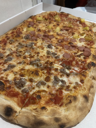 abbiamo ordinato una pizza al metro per un orario specifico, pensando di poter passare a ritirarla e andare via. siamo anche arrivati 3/4 minuti dopo l’orario giusto (a causa del parcheggio) e comunque quando siamo entrati la pizza non era ancora stata fatta. nel locale - per fortuna senza tavolini - l’odore era fortissimo e siamo dovuti rimanere ad aspettare fuori 15 minuti perché ce la preparassero… diciamo che non dovrebbe funzionare così. la pizza era buona, anche se...