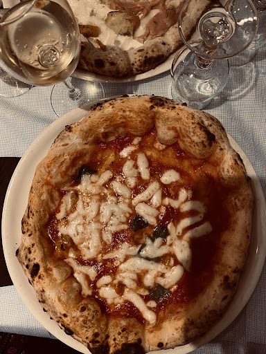 Locale rinomato per la pizza, decidiamo di prenotare per un sabato. Nonostante la prenotazione, abbiamo atteso 30 minuti al freddo con due bambini piccoli. Dopodiché (alle 22:15) ci fanno accomodare nella veranda dove notiamo già delle persone con il giubbotto. Arriviamo al nostro tavolo sprovvisto di spazio, uno di noi stava letteralmente tra il tavolo e il piccolissimo spazio dove di continuo i camerieri dovevano passare. La porta rimaneva spesso aperta ma, comunque, entrava il freddo per il continuo via vai del personale che serviva. Le poche stufe non hanno riscaldato, pertanto abbiamo mangiato al freddo. Gli antipasti erano buoni così come le pizze, sul cibo nulla da dire! Altra nota negativa è la fretta del servizio: intorno alle 23:30 iniziano a spegnere le luci della sala accanto, nonostante un altro tavolo vicino al nostro che stava festeggiando un compleanno, capiamo che il tempo di permanenza era scaduto. Ciò confermato dal fatto che in molti di noi volevano il dolce e abbiamo dovuto richiederlo anticipando i camerieri che stavano pulendo la sala (avevano spento anche le stufe intorno a noi). Alle 23:45 circa eravamo fuori dal locale infreddoliti e in molti non abbiamo finito le pizze. La fretta e il gelo sono stati sicuramente incisivi su questo. Dunque pizzeria consigliata assolutamente per la pizza ma non andate nel weekend e soprattutto non mangiate nella veranda...