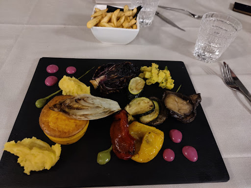 Purtroppo, essendo convenzionato, posso consumare il pasto solo presso gli esercizi della loro catena di Faenza. Anche la fettina di pollo della collega era alquanto risicata. Delle volte, per ovviare alle porzioni scarse, mi reco nella loro mensa presso il parco Bucci, che sicuramente come location è meno raffinata, ma a pranzo mi accontento di una sedia e di un tavolo e preferisco mangiare qualcosa in più. Un caloroso saluto alle ragazze che curano il servizio, tutte bravissime anche se a volte accusano la pressione di un lavoro sicuramente non facile, e un supervisore eccessivamente zelante, e la...