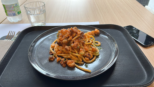 Mi sono ritrovato per caso all’inaugurazione e avendo degustato le proposte ho deciso con un amico di andare a provare per pranzo. Locale accogliente e staff gentile e preparato. Interessante perché ci sono proposte fisse e proposte special usando ingredienti stagionali quindi immagino cambino spesso i piatti fuori menù. Abbiamo preso spaghettoni al ragù di gallinella e olive nere e tortellini alla crema di parmigiano, entrambi ottimi. Poi abbiamo continuato con guance di manzo brasate con purè di patate pastinaca e sedano rapa (si scioglieva in bocca) e tartare di manzo su misticanza con bruschette al burro. Tutto superlativo, e ho trovato la più buona zuppa inglese mai mangiata. A solo due passi dalla stazione. Che dire? Posto da provare sicuramente e non vedo l’ora di tornarci per provare nuove proposte. Prezzo contenuto ma...