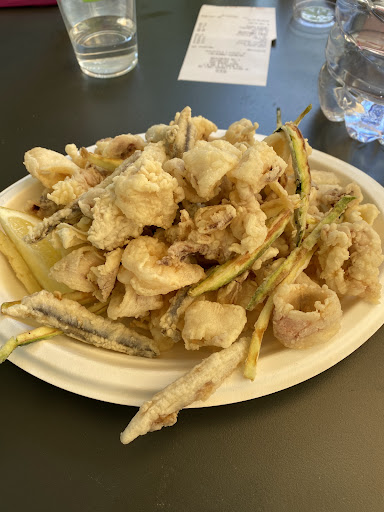 An eccentric little seafood shack in the middle of pasta- & meat-obsessed Emilia Romagna. Offering great food & inventive dishes, all freshly cooked. Very friendly staff who speak some English. We enjoyed the breadcrumbed cod & mashed potato balls with mayo, the small Adriatic scallops gratinés in their shells (“canestrelli”), the fried anchovies, the grilled vegetables, the spicy shrimp & lardo on a kind of soft pizza base ; and the white wine & prosecco were good too. Prices are very modest. Easy free parking near-by. The plastic plates & cutlery are sub-optimal but I get that it’s functional....