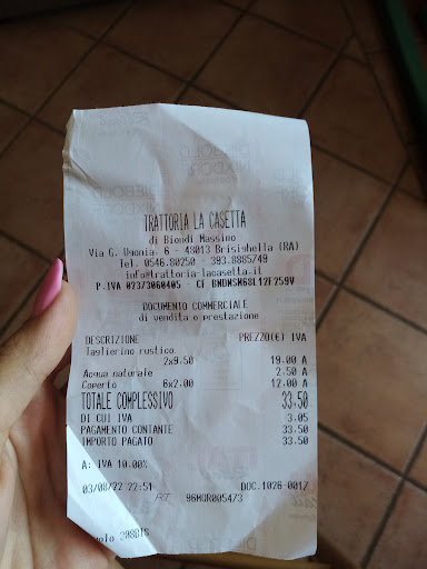 Read moreFabulous food! Been traveling around Tuscany and Emilia-Romagna region in the past couple of weeks, trying many great restaurant. When it comes to first courses ("Primi") La casetta sits a notch above all. My wife and I started ordering 3 first courses and ended up ordering 2 more. That's 5 pastas in two! Why? Recipes are traditional, however many with a modern twists, ingredients used are strictly local and pastas are all handmade. Pro-tip: pastas are all good but filled pasta (ravioli, tortelli, cappellacci etc..) are on a...