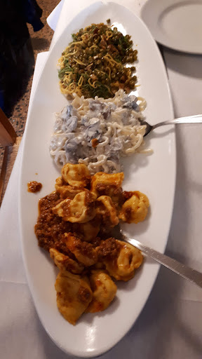 Read moreIl locale un po' retro', forse lo è anche piacevolmente, con quelle luci e lampadari sui mobili che un poco riporta all'atmosfera di un "quasi" bistrot francese.... ma certamente con un'anima distintamente casereccia. Bello e spazioso il giardino interno all aperto.Personale giovane e sorridente che compie egregiamente il proprio compito. Per chi cerca la cucina "romagnola classica" direi che siamo sul vago perchè qui ci sono cose che tengono il piede in due scarpe. Al cliente appena arrivato portano ( bellissimo e gradito) un cestino di gnocco fritto... romagnolo? per quanto molto piacevole, non mi pare un abitudine conclamata della Romagna..della piadina non c'è traccia. Per il romagnolo che cerca la quantità invece prevedo grande soddisfazione ..un tagliere di affettati e formaggio per due persone che comodamente si consuma in 4 o anche più. A seguire involtini di prosciutto con radicchio e mozzarella all'aceto balsamico, non così consueto come piatto romagnolo.. poi tris di primi con gramigna salsiccia e funghi con quella panna chef bella soda come lo era 30 e più anni fà , Paglia E Fieno Con Piselli E Prosciutto, un piatto che è possibile mangiare "forse" solo qui? ..e a completare cappelletti al ragù. Per chi decide di partire così posso garantire che non rimane spazio...direi neanche per il dolce. Credo che si ritornerà per passare direttamente a...