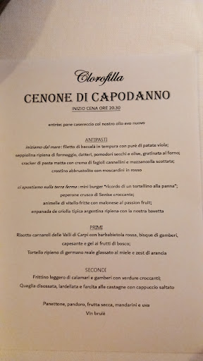 31/12/2023. B A S I T A Io e il mio compagno ci siamo recati al Clorofilla per il cenone di fine anno (abbiamo già frequentato il locale tre o quattro volte in precedenza). La qualità del cibo e delle materie prime è buona e in genere il personale è molto carino e attento al cliente ma a fine cena è successa una cosa che sicuramente NON mi farà più rimettere piede in quel locale. Al momento di pagare ero in fila alla cassa ormai da quasi dieci minuti (il personale era occupato) quando una Signora anziana (probabilmente una cliente abituale dato che al momento del brindisi al suo tavolo, 3 donne e un uomo, hanno scambiato abbracci con i camerieri per gli aguri) si è praticamente infilata nella postazione della cassa prima di me e quando ho fatto notare all'addetto la cosa, lui ha semplicemente fatto pagare la Signora (l'amica che era con lei si è palesemente vergognata e ha chiesto se volessi fare prima io) e poi mi ha detto "cosa avrei dovuto fare?"