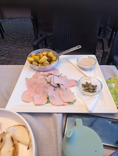 Read moreLocation bella, comoda, nel centro del centro di Carpi e di più non si può. Si può mangiare sia all'esterno che all'interno in una struttura che si allunga e si divide in più salette, di stile moderno e semplice dove si sta comodi e rilassati. Unica pecca i servizi igienici che lasciano molto a desiderare. Il menù è completo, dagli antipasti al dessert si spazia da una buona selezione di pietanze per ogni portata, con prezzi giusti. La carta dei vini è davvero ampia e il vino in calice finalmente è stato di buona qualità e ben conservato. Sulla qualità finale della nostra cena e sul servizio però, c'è da fare di più: il pane non proprio fresco e di qualità (sono degli anonimi panini) viene servito in contenitori poco belli da vedere; il primo di pesce, fuori menù, aveva quasi niente di pesce e non proprio economico; la carne era squisita ma il contorno di patate un pò secco e leggermente salato. I funghi porcini al forno, serviti su un lettone di insalata, non proprio il massimo della presentazione, ma erano buoni tutto sommato. Servizio un pò lento e poco comunicativo, anche se sempre gentile e garbato. Sarà stata anche una serata storta e ci può stare, ma da un posto cosi carino ci si aspetta di più e ritornerò sicuramente a riprovare, ma la sensazione che lascia è che manchi la cura del dettaglio e quel pizzico d'attenzione che fanno la...