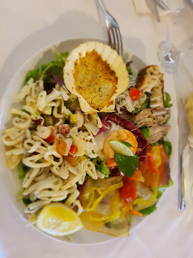 Read morePer lavoro passo spesso vicino il casello di Campogalliano e vedevo sempre questo locale un po' anonimo in una strada chiusa passato una rotonda. Specialità pesce! Proviamo. Ampio parcheggio con grandi alberi ke fanno ombra anke a mezzogiorno il ké nn guasta. Domenica ci sono andato e la volontà era di fare degli assaggi. Ci sono 3/4 Antipasti di pesce scegliendo alla fine il LunaRossa, 16€. Arriva nel frattempo un timballo di pasta fagioli e cozze gratinata a torta. Semplicemente squisiti. Arriva anke del pane fatto in casa cn crosta croccante... ottimo. Arriva l'antipasto su piatto da pizza stracolmo di assaggi. Mia moglie e piena cn quello. Io azzardo una GranFrittoMisto. Ottimo con quelle cipolle fritte in cima. Saporita, croccante, leggera e non perde la panatura. Scelgo un vino bianco frizzante della casa molto buono. Sono pieno, ritornerò. Ah ottime cheesecake al mirtillo e al cioccolato. Giovanni il titolare mi offre un limoncello non tradendo le sue origine campane. Da altri piatti ho intravisto bufala di Battipaglia e zizzona.. da provare...