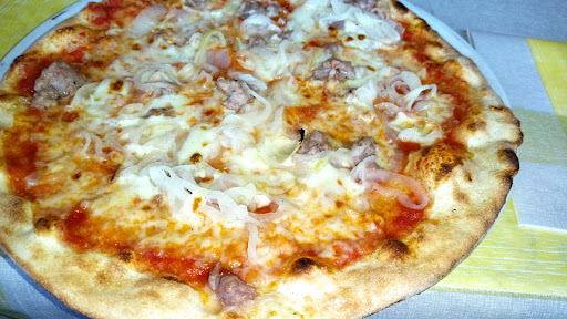 location tipica da locanda per pranzi di lavoro. due tavoli gia occupati. Ci siamo seduti al tavolo un sabato alle 13.15 e veniamo accolti col menu. in lista alcuni antipasti, menu all-inclusive molto cari, una decina di primi e alcuni secondi tipici della zona, infine 4 pagine di interessanti pizze. dopo aver scelto la pizza la cameriera ci fa attendere per andare a chiedere se il forno della pizzeria è acceso. tornando, ci avvisa che scordava il fatto che nel weekend non fanno pizze. prendiamo due primi che prima di essere scritti sulla comanda hanno dovuto attendere che venissero preparati i tavoli per altre persone in attesa di accomodarsi. abbiamo dovuto chiedere che ci venissero portati sia i grissini (che tutti gli altri commensali sgranocchiavano) sia il pane per fare scarpetta. ho dovuto far cambiare la forchetta che aveva incastonati vecchi residui di cibo tra i rebbi. dopo aver ordinato apprendiamo, origliando gli altri ordini, che esistono piatti del giorno fuori menu, che non ci sono stati presentati e che avremmo gradito valutare. fortunatamente le pietanze erano nella norma come quantità e qualità. oltre alle scuse 80 cents di...