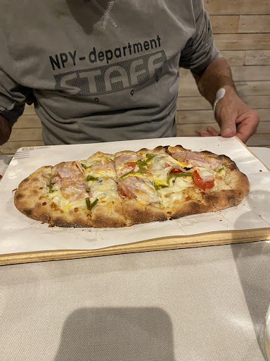 Read moreIl prodotto in sè per sè è buono, nulla da dire. Metto due stelle per la situazione in cui mi sono trovato. Ci siamo seduti alle 20.30 io insieme a mia moglie, mio figlio di 1 anno e mezzo e i miei suoceri. Premetto che noi non siamo gente che và a chiamare i camerieri o a fare pressione in cucina, cmq hanno preso l'ordine dopo circa mezzora. A 40 minuti dall'ordine ci sono arrivate le bevande e alle 22.00 circa non ci era arrivato niente ed a quel punto ci siamo alzati e siamo andati via. Era una serata piena con anche un tavolo da 40 persone o più. Il proprietario ci ha abbuonato le bevande e ci ha dato le pinse d'asporto che erano pronte al momento che eravamo alla cassa già vestiti e pronti per andare. Questo voto discute solo l'organizzazione di quella serata e soprattutto la poca accuratezza dimostrata al mio bimbo piccolo che è andato a letto senza...