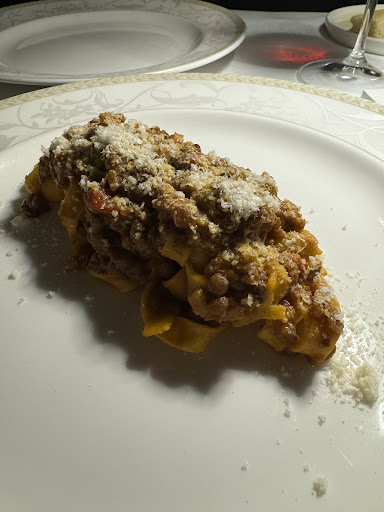 The food was good, though a bit too heavy for my taste. The vegetarian pasta was outstanding — full of flavor and beautifully done. The veal, on the other hand, was just okay — nothing special.