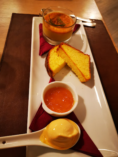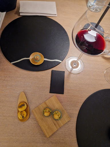 Read moreRistorante moderno e accogliente con tavoli belli larghi e distanziati. Abbiamo assaggiato 2 antipasti, 2 secondi e 2 dolci e speso un po' tanto, però la qualità del cibo era medio-alta. Come antipasti il cappuccino di baccalà era un'idea bellissima con presentazione ottima, ma il gusto era troppo delicato, quasi dolce..! Il carpaccio di chianina invece era tagliato troppo spesso, quasi impossibile da mangiare, condito con un gelato ai porcini squisito ma scarso e una salsina al prezzemolo molto buona. Come secondo abbiamo ordinato lo sgombro in oliocottura (niente di che) e il cubo di fassona con purea di zucca, migliorabile sia come gusti che come presentazione. I dolci mi sono piaciuti ma nel tortino di mela con crema pasticcera le mele non si sentivano nè vedevano e la crema (deliziosa) è stata servita al tavolo, ma non sono stati affatto generosi! Molto originale il crumble al tabacco con gelato alla menta e cremoso alla liquirizia. Per quanto riguarda il vino, abbiamo chiesto aiuto al sommelier per la scelta di una bottiglia che potesse stare bene con i diversi sapori dei piatti ordinati, ma ha toppato completamente, non stava bene nè col baccalà mantecato nè...