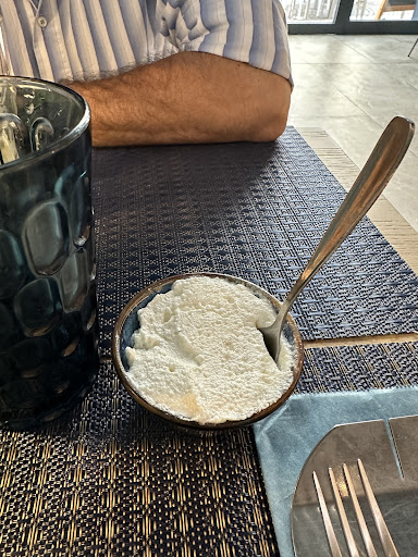 Poi arrivano due delle tante specialità accompagnate con pita e il proprietario ci ha consigliato di prendere la salsa tirosalada( crema di formaggi cretesi, feta e pepe)per provare una salsa nuova(l’acidità dello yougurt era leggera e il sapore che ti lasciava in bocca era una carezza per il palato)