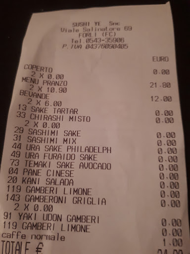 Ottimo all you can eat giapponese e cinese. Ora sono 2 i migliori di Forlì: questo ed isushi. Servizio molto gentile e simpatico, locale bello e ben curato (mi piacciono molto i box intimi lato vetrata). Sushi sashimi maki molto buoni e gustosi. Buoni gli spaghetti di riso con gamberi. Andato con amici per provare anche questo ristorante e devo dire che merita, ci torneremo spesso visto che adoriamo il sushi. Solo i ravioli alla griglia (gusto personale) potrebbero essere migliorati......la pasta era un po’ durina e la carne dentro non riempiva bene il raviolo.....ma è giusto per volere fare i fiscali.....per il resto veramente buono tutto. Sushi Ye ed Isushi attualmente a Forlì sono il top , di gran lunga migliori degli altri....senza se e...