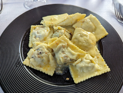 Read moreSehr schönes Restaurant mit großem Außenbereich. Netter und aufmerksamer Service, Qualität des Essens ist ausgezeichnet. Preis - Leistungsverhältnis ist sehr gut. Die Portionen sind so ausgelegt, dass man ersten und zweiten Gang nehmen kann. Wir hatten als ersten Gang mit Muscheln gefüllte Ravioli und Tagliolini mit Meeresfrüchten. Sehr gute Portion, selbstgemachte Pasta. Als zweiten Gang hatten wir gebratene Calamari und Zucchini und Thunfisch Steak in Pistazienkruste mit Salat und frische Tomaten. Als Nachtisch haben wir Zitronensorbet und Schokoladen-Ricotta-Tarte genommen. Alles wirklich sehr lecker und empfehlenswert. Wir waren die einzigen ausländischen Gäste, aber es gibt eine englische Karte und die Bedienung versteht englisch. Haben uns sehr willkommen gefühlt und vor...