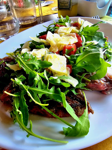 Il ristorante è caratterizzato dall'essere in una posizione da cui si domina tutta la vallata, per cui consiglio vivamente di richiedere un posto vicino alla lunga vetrata da cui si gode di una vista eccezionale. Ottimi e abbondanti i panigacci, che i simpatici ed operosi camerieri fanno arrivare in tavola a ciclo continuo portando via quelli che ne frattempo si sono raffreddati. In particolare oggi io ed un amico li abbiamo abbinati ad uno sfizioso misto di salumi e formaggi. A seguire abbiamo optato per una tagliata di manzo su un letto di rucola e grana ed un contorno di insalata verde e pomodori. Buona la carne, ma la mia era un po' troppo cotta nonostante mi fossi premurato di richiederla al sangue. Il tutto l'abbiamo annaffiato con due bottiglie di acqua ed un fiasco dell'ottimo vino della casa, un rosso dei colli di Luni. Infine io mi sono fatto portare un caffè e il mio amico un sorbetto al limone. A fronte di un conto di 66,5 euro alla cassa ce ne hanno fatto pagare solo 58, scontandoci il resto. 29 Euro a testa. Una spesa più che onesta, a fronte di tutto ciò che...