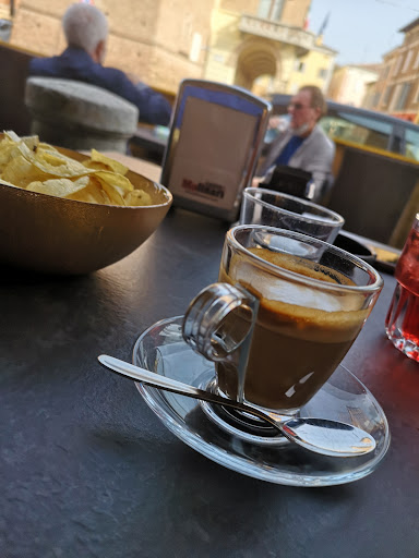 Castelnuovo Rangone. In pieno centro storico, di fianco la torre. Bella la vista sulla chiesa, la torre e sul porcellino. Locale molto bello e curato sia all'interno che all'esterno (alcuni posti sono con tettoia altri no). Personale disponibile, gentile e molto veloce nel servirti. Aperitivo non male, migliorabile l'accompagnamento (un po' poche solo le patatine). Caffè macchiato buono. MALE per il prezzo del campari (5 euro, mentre in Veneto si attesta sui 3.50) e MALE sulla commissione con il...
