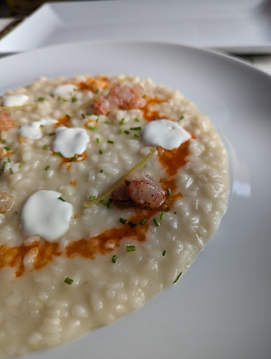 Surreale. Ordino 2 calici di champagne e il cameriere arriva con una bottiglia ormai finita, quindi fa la pessima figura di versare un bicchiere e 1/10. Torna, e versa la differenza, ma avrebbe potuto evitare la scena. Propone, quindi, un fuori menù.
