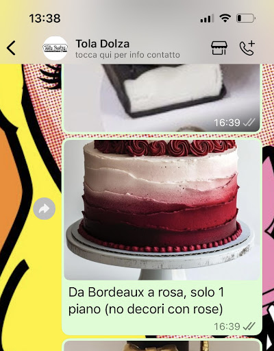 Read moreMi sono sempre affidata a questa pasticceria per le torte di compleanno e sono sempre rimasta soddisfatta, ma purtroppo per la torta della mia laurea, l’esperienza è stata pessima. Avevo mandato una foto chiara della torta (allego screen) e avevo detto di farla bordeaux. Il risultato ? Una torta brutta color salmone. Già questo mi aveva delusa, ma avrei potuto sorvolare se almeno fosse stata buona. Invece, il sapore era terribile, sapeva solo di colorante artificiale, senza alcun gusto vero e proprio. Quello che mi ha deluso ancora di più è stato l’atteggiamento della pasticceria. Nessuno si è preoccupato di capire cosa fosse andato storto, il pasticcere non è venuto a parlare direttamente con me per scusarsi, come se pensasse “Ormai hai pagato, le tue lamentele non ci interessano.” Trovo questo comportamento poco professionale e irrispettoso, soprattutto per un’occasione così importante come la laurea. Dopo anni di fiducia, sono davvero delusa, non mi rivolgerò più a voi per...