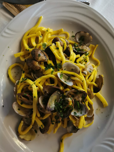 Read moreCi siamo stati x una cena. Antipasto di pesce molto buono poi una frittura la quale aveva un retrogusto amaro. Con il pesce come pane ci hanno fornito delle focaccine stracondite (buone) di pomodoro e altro. No semplice pane...con il pesce ci stava bene pane normale o grissino che non c'era. Cameriera bravissima ... finché non è stata sostituita da un'uomo che ci trattava come se fossimo dei muratori...zero finezza zero competenza. La nonna (di 90 anni) controlla i conti in bella vista accanto alla cassa...già ti fa perdere un altra Stella xché potrebbe fare non al pubblico...senti di essere in un libro di Molière. Alla cassa trovi una personalità simile alla nonna senza sorriso vestita di nero. Cucina abbastanza buona peccato x la non curatezza del servizio e per l'aria che si respira dopo l'arrivo dei titolari e le urla che si sentono.. Posto comunque bello giardino bello.. nel mese di agosto ancora illuminata con le luci natalizie. Non credo che ci torneremo..ci siamo sentiti da ...con delle mani.. nelle...