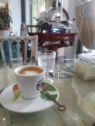 Read morePeccato essersi fermata solo per un veloce caffè...sarei rimasta a godere di ogni piccolo particolare... complimenti a voi o all'interior designer per l'arredamento di recupero in chiave moderna...tavolini di cristallo appoggiati su antiche valige...in bella vista un'affettatrice Berkel che domina la sala interna. Anche anche un dehors sullo stesso stile di buon gusto. L'ambiente raffinato lo percepisco anche dal servizio al tavolo di un semplice caffè per nulla scontato nei particolari (cucchiaino e bicchierino dell'acqua...vedi foto) e dalla cortesia del...