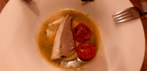 Read moreUna delle migliori cene di compleanno di sempre (zinquantaset!) , ieri sera, al Casa Nobili di Santarcangelo. Bel locale nel centro storico di Santarcangelo, consigliato dall’amico Carlo Poggi. Menu molto corto (4 antipasti, 2 primi e 3 secondi ) che cambia ogni giorno, con la disponibilità del mercato. Mi è toccato, nell’ordine: -Acciughe, fichi e gelato al parmigiano , piatto che esaltava ai massimi livelli il contrasto dolce/salato. -Tagliatelle vongole e fiori di zucca -Tagliata di tonno alletterato con peperoni arrostiti e salsa terijaki (Il dolce Tortino tiepido di mele con crema inglese è scomparso prima di essere immortalato) Ad accompagnare -Metodo classico Pas Dosè di Pagadebit , Tenuta Sant’Aquilina di Rimini -Syrah , Podere Vecciano di Coriano (Rimini) -Solaris di San Michele Appiano (BZ) Servizio impeccabile, nonostante il secondo diluvio di compleanno consecutivo, con corsa a lasciare i tavoli esterni (che sia una cabala?). Conto , di quelli di una volta volta, per il miglior rapporto qualità/prezzo degli ultimi...