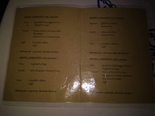 Esperienza pessima. Cena con amici. In sei ordiniamo tre antipasti misti, tre primi, due grigliate, due patate al forno, due bottiglie d'acqua ed una di vino della casa. Cominciamo (male) dall'acqua naturale, che ci viene servita nella brocca di vetro ed era evidentemente acqua frizzante sgasata. Sicuramente un riciclo. Penoso. Arrivano i tre antipasti, che ci vengono serviti in un unico vassoio, composto da tre fette di prosciutto crudo, tre fette di coppa di testa, tre fette di coppa ed una dozzina di fette di salame sottili che avevano un odore ed un sapore di vecchio. Disgustose. Mi viene da pensare possano essere state affettate tempo prima e conservate male. Lo faccio presente al cameriere, che di tutta risposta mi comunica che non siamo il primo tavolo a lamentarci e che avrebbe riferito in cucina. Preciso che nessuno si è mai più guardato bene dal menzionarci questo "disguido"! Per quanto riguarda le insalatine comprese nell'antipasto, consistevano in due piattini da dessert (per fare meglio comprendere la quantità totale di insalatina per tre antipasti da 36 euro complessivi!) di fagioli, cipolla e lesso a pezzetti in uno e di cetrioli, cipolla e lesso a pezzetti nell'altro. Personalmente mi sono ritrovata a masticare tra le altre cose un pezzettino di osso di gallina bello acuminato. Arrivano i primi, che consistono in due porzioni di gnocchi al formaggio di fossa ed una lasagna. Gli gnocchi, seppur abbondanti, non avevano né la consistenza né il sapore di patata, dunque mi viene da pensare fossero tocchetti di pasta fatti passare per gnocchi. Il fossa i poveretti non l'hanno mai visto neanche in cartolina. Per di più, in quel pastone legato da una fonduta di formaggio ignoto, navigavano indisturbati una manciata di strozzapreti talmente scotti che non oso immaginare quante ore di cottura avranno visto nella loro povera inutile esistenza! La lasagna decisamente scotta, ma nel complesso mangiabile. Il top l'hanno però raggiunto con le due grigliate. Che dovevano arrivare insieme ai primi, invece sono arrivate a distanza di mezz'ora dai primi ed un'ora e venti minuti dall'ordinazione. A parte la qualità scadente della carne, che aveva uno strano odore di pesce, probabilmente a causa della poca freschezza della stessa, ci arriva quasi totalmente cruda. Impensabile mangiarla considerato che si trattava di maiale e fegatini. Il contorno di patate al limite del mangiabile. A quel punto l'abbiamo rimandata indietro e ce ne siamo andati. Dal conto, che si paga direttamente in cucina (assurdo), in cui escono degli odori stomachevoli, abbiamo preteso di togliere le grigliate. Nessuna scusa da parte loro. Il conto che abbiamo pagato per uscire dal locale incazzati ed affamati è stato di 97...