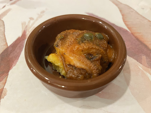 I was invited by friends for a fish dinner and I knew it was going to be a treat, but I never expected such an incredible evening meal! We had delicious starters: my favourite was a fish 'tortino' accompanied by fried artichokes and burrata with anchovies. We had three kinds of pasta: unusual delicate potatoes gnocchi served with 'rosole' pesto and fish; handmade passatelli in a clams, tomatoes and cuttlefish sauce; ricotta and fish cannelloni . The main courses consisted of a mixed tempura of courgettes flowers and fish, baked monkfish chunks rolled in bacon with sweet peas sauce...and more ....more ...plus very good wine... We enjoyed it at the most, it was a fish dinner to remember.... The bill was much lower than expected too! I will return for sure and...