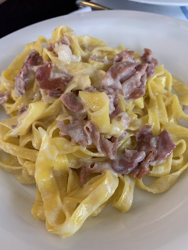 Read moreattratti da questo posto, perchè famoso in tutta l'Emilia-Romagna per le sue tagliatelle, decidiamo di assaggiare la loro specialità. Accolti molto calorosamente veniamo fatti accomodare in un bel tavolo. Arrivano i menu e poco dopo ordiniamo 4 tagliatelle al ragù. Speranzosi e fiduciosi attendiamo di assaggiare questa leccornia come nessun altro sa far meglio. Eccole fumanti di fronte i nostri occhi, quattro misere porzioncine da circa 90 grammi a secco di tagliatelle praticamente crude, tirate via dall'acqua come un figlio prematuro, il condimento, il sedicente ragù, composto da una carne troppo finemente tritata che quasi rasenta un patè. Il sapore troppo intenso di "stufato" delinea una eccessiva abbondanza di trito di verdure, che copre quello della carne, di dubbia qualità. Insomma esprimo un parere altamente negativo che per 10 euro a porzione mi sarei aspettato anche del parmigiano reggiano fresco e senza cose strane dentro la formaggiera, tipo pallino neri o corpi estranei al formaggio. La presa per il culo del cameriere stata la chicca finale, chiedendoci se volessimo mangiare anche dei cappelletti. Ma per carità...ora che ci penso nel mio piatto ci saranno finite si e no 65 e i 75 gr di pasta e non era il più piccolo del...