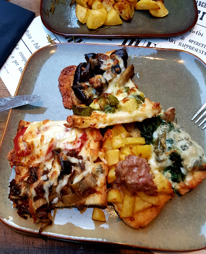 Read moreTorniamo nel centro di Santarcangelo per provare questo locale. Già il nome incuriosisce e in effetti all'interno si trova la spiegazione di questo luogo e nome. Devo dire che l'arredo interno e la particolarità dell'ambiente sono molto belli. Diverso: sembra di stare nei vecchi ritrovi (particolare anche il camino). Menù classico ma senza secondi o primi della tradizione, con alcuni piatti con prodotti particolari proposti, piadina buona ma non sempre ben cotta ( la fretta e un cattivo consigliere) . All''esterno sul viale mettono dei tavoli tutti molto piccoli e non proprio in piano, capita che non siano adatti alle pietanze richieste, scomodi se si è in diversi. Buona la carta dei vini ma prezzi elevati per le etichette. Fanno anche cocktail che non ho provato...torneremo. Personale simpatico e disponibile ma per l'abbigliamento alcuni clienti se non conoscono evitano. Direi che è gestito da 3 soci e capita a volte una ragazza (almeno lei ha una divisa riconoscibile ). Buone le porzioni. Mise en place con il secchiello e carta ci si arrangia. Prezzo elevati ma bisogna considerare che si è nel centro di Santarcangelo.. nelle vicinanze numerose altre opportunità. Servizio solo serale e prenotazione non facile Pargheggi nel raggio...