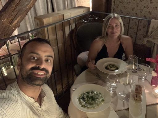 We got here after our visit to San Marino in our campervan for some cocktails and apero. We really enjoyed our cocktails and also the very kind miss that served us and spoke very good english. We ended up having dinner here as well and really enjoyed it. We had a cheese and cold meat platter and it was awesome. Really quality local meat, cheese and fruits. As main course we had Stinco and Tagliata. While I usually like my meat medium-rare the slow cooking method surprised me. The Stinco was really tender and the meat fell right off the bone. The only minus was the desert where the kitchen forgot to add sugar to the strawberry mousse, but hey, mistakes happen and the pistacchio dolci on the other hand (I forgot the name) was to die for. We had some local white wine with our food that was also really good. This place is really...