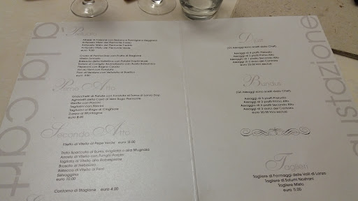 Read moreMediamente buono. Dolci molto belli ma di modesta sostanza. Per una prima volta è consigliato il menù degustazione nella varietà di nove piatti. Tra gli antipasti della tradizione piemontese spicca un buon vitello tonnato, meno interessanti la terrina di coniglio perché l'aglio imperava. Gli antipasti sono tre, due gli assaggi di primi, interessanti i gnocchi limone e zafferano. Discreti i ravioli alle nocciole ...di secondo un arrosto che lasciava un po' a desiderare per la consistenza un po' troppo dura. Carta dei vini molto ridotta. Buono comunque il rapporto qualità prezzo ed il servizio molto professionale. Per chi trascorre l'estate su questi monti, può essere una valida meta per trascorrere un giornata alternativa. Mediamente la spesa si aggira sui 35 € a testa con bevande e...