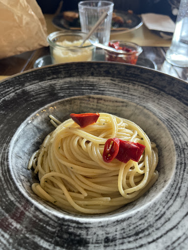 Read moreRapporto qualità prezzo da pazzi... 30 € a testa (bambini piccoli compresi) per mangiare quello che vogliono loro. Arriviamo alle 8, dopo aver prenotato, locale carino ma vuoto, la ragazza che serve ai tavoli, gentile, ci porta il menù informandoci subito che TUTTI i primi non erano disponibili (con 3 bambini a tavola ti aspetti che almeno una banalissima pasta in bianco te la facciano senza problemi), decidiamo di ordinare la caponata... non c'è, come non c'è il prosciutto con i fichi.... Il menù non offre tantissima altra scelta se non il menù degustazione carne (minimo x due) con carne dalla qualità discutibile, senza gusto e contorno (praticamente un assaggio!) che non lascia un meritevole ricordo. Prendiamo 2 menù di carne (obbligati!!) (quantità e qualità da rivedere), due vitelli tonnati (carne dal colore quasi surreale, dura e insapore), Acciughe (che onestamente non ho assaggiato). Arriva il momento del dolce, tanto decantato sul menù.... beh la scelta era davvero minima... una cheescake o una similpanna con una sbriciolata di qualcosa tipo biscotti e un po di Nutella.... abbiamo optato per quest'ultimo dolce che abbiamo fatto fatica a finire in 4.... e non per la quantità!! Aggiungo 2€ di coperto per mangiare sulle tovagliette di carta e 2 € per l'acqua del rubinetto microfiltrata.......... Non ci torneremo sicuramente, perché per pagare 30€ a testa vorrei uscire perlomeno sazia e per aver mangiato quello che volevo io!! Io non lo...