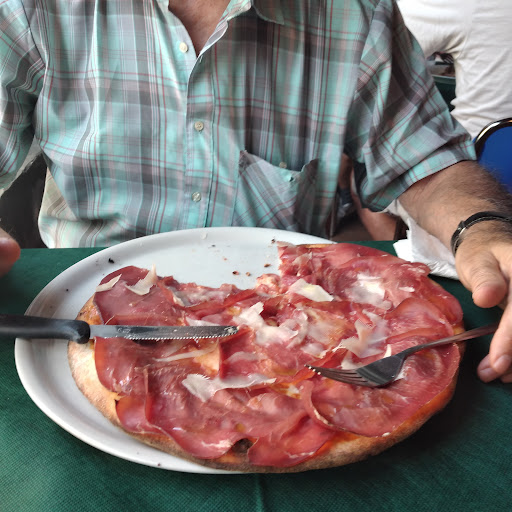 Esternamente non mi convinceva.... Bar/ pizzeria/trattoria...la Piazzetta... Musica Bob Marley.... Va beh proviamo.... Internamente classico bar con dei tavolini.... Arriva il ragazzo e ci chiede dentro o fuori.. Optiamo per dentro.. Il locale era vuoto con una coppia seduta esternamente... Ci siamo seduti e dopo poco è arrivato il ragazzo ( presumo il figlio dei proprietari) Ci espone il menù del giorno e ci pone i menù delle pizze ( molta scelta) Optiamo per due pizze.. Passano 15 minuti circa e arrivano..... In questi 15 minuti la proprietaria seduta dietro noi, inizia ad attaccare bottone.. Ci parla dei suoi cani ( uno presente nel locale) e il tempo scorre in fretta... Ci chiede se la pizza la vogliamo già tagliata e noi le diciamo di si, e lei si precipita in cucina a farlo presente... Beh fatto sta che entrano altri clienti presumo del posto e il clima diventa familiare.... Arrivano le pizze... Non avevo mai mangiata una pizza così... Diversa dalle altre.... Incuriosito ho chiesto al ragazzo per questa diversità dalla pizza classica.. E mi ha spiegato che loro fanno la pizza alla Genovese e non alla napoletana.. In pratica la cucinano sulla pietra refrattaria.... La pizza risulta bassa e croccante. Alla fine prezzi nella norma 2 pizze (8.50€/9.00€) dipende poi uno cosa prende... Birra alla spina (Moretti) una fanta e un caffè ( buono!) tot 26€... Per me prezzi nella media.... Spesi volentieri perché poi ci siamo sentiti in un ambiente familiare. La proprietaria molto simpatica e genuina e questo vuol dire tanto... Lo Consiglio e semmai dovessi ritornare a Lanzo Torinese sarà sicuramente uno dei posti...