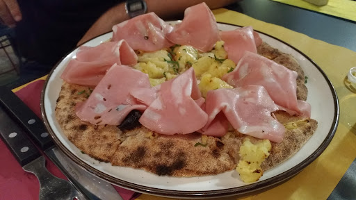 Preciso che la recensione è il risultato di una decina di visite. Per ben 2 volte di martedi sera (intorno alle 21.30) non ci hanno fatto sedere (in 4) in quanto, a loro dire, erano pieni (o come dicono loro: in overbooking, che fa figo) nonostante apparentemente ci fossero svariati tavoli vuoti. Altrettante volte (e non esagero) stessa cosa, non siamo stati accolti in quanto, sempre a loro dire, era terminato l'impasto (immagino 'tutti gli mpasti visto che non avevamo fatto richiesta di una farina specifica), che per una pizzeria, seppure gourmet, è tutto dire. A sensazione (ripeto: solo a sensazione) semplicemente le cameriere non ne avevano più voglia e volevano chiudere prima possibile. La stessa idea che è trasparita altre volte nelle quali invece, prenotando, non avevano fatto problemi a farci sedere... una volta ad esempio si sono rifiutati di portare una fornarina (pizzetta fritta) in quanto secondo loro era finito l'impasto (ma non si usa lo stesso della pizza normale?)... a mio avviso invece non avevano voglia di riaccendere la friggitrice presumo già pulita per la chiusura. Per quanto concerne la pizza è buona, qualche volta un po' troppo bruciacchiata, ma buona, nulla più, anche se loro sulla tovaglietta la definiscono presuntuosamente 'buonissima'. Sulla digeribilità ho parecchi dubbi, il risultato sul mio stomaco è stato alterno ma non sempre soddisfacente. Le fornarine sono buonissime, quelle si. Ultimamente ci sono stato a pranzo in un giorno feriale: le due povere ragazze lasciate a gestire sala interna e sala esterna (circa una ventina di tavoli con avventori seduti), pur dando l'idea di non essere dei fulmini, han fatto quello che hanno potuto, ma la situazione è risultata molto critica con clienti arrabbiati per i tempi di attesa, disguidi, piatti (fornarina) posati non sul tavolo ma dentro al piatto precedentemente terminato (!!!), bottiglia caduta ad una delle cameriere lasciata in mille pezzi sul pavimento per più di un'ora (presumibilmente per mancanza di tempo x raccoglierla)... Mah, io non so chi siano i titolari, se sono in cucina o dove, ma certamente la sensazione (torno a dire: solo una sensazione personale) è che le ragazze siano poche, abbandonate e probabilmente mal gestite. Il risultato è che il servizio è insufficiente, l'ambiente è carino, il cibo è buono ma non buonissimo (con digeribilità nella norma), il conto un po' altino. Risultato:...