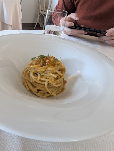 Read moreRistorante storico a Pieve di Cento, punto di riferimento di tutti i gastronomadi che si trovano in zona e non. La cucina è eccellente, il servizio attento e cortese, la location suggestiva vicinissima alla Porta Bologna. Abbiamo degustato un entree' della casa, ottime canocchie salsa di pane al prezzemolo e ricci di mare, spaghetti alla carbonara all' assoluto di cozze, spalla di agnello brasato topinambur al limone, un predessert e come desserts il latte in fiore e mandorle asparagi e limone, per concludere un ottimo caffè con cioccolato di qualità il tutto annaffiato da un' ottima bollicina. È sempre un piacere ritornare in questo luogo e in questo ristorante del cuore che regala forti emozioni. Si possono organizzare pranzi e cene a tema, concordando il menù con la bravissima e abile chef Alessandra. Il prezzo è in linea con la qualità. ...