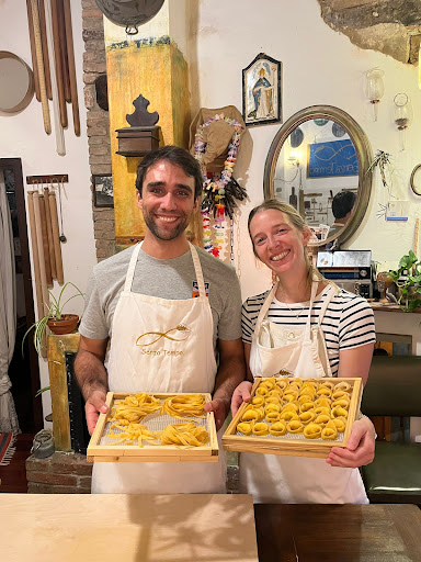 Abbiamo avuto il piacere di partecipare a un’esperienza indimenticabile presso Lo Sfoglino "Senza Tempo", un luogo che non solo celebra la tradizione culinaria emiliana, ma la trasmette con passione e autenticità. Il protagonista di questa magia è Massimo, il proprietario, che ci ha accolte con un calore e una simpatia unici, rendendo ogni momento del corso non solo istruttivo, ma anche divertente e coinvolgente. Massimo è un vero maestro dell’arte della pasta fresca, e non è solo un esperto nella preparazione dei tortellini, tortelloni e tagliatelle, ma anche un insegnante che sa trasmettere la sua passione con una tale dolcezza che sembra di giocare mentre impariamo. Con pazienza infinita e un sorriso sempre pronto, ci ha guidate passo dopo passo, facendoci sentire come veri artigiane della pasta, e dimostrando che ogni gesto, anche il più piccolo, ha una storia da raccontare. Ci ha insegnato a tirare la pasta a mano, a dare forma ai tortellini e a lavorare con la stessa cura e attenzione che contraddistingue ogni piatto che esce dalla sua cucina. Il tutto, immerse in un’atmosfera che sa di casa e di tradizione, ma anche di innovazione, perché Massimo è capace di rendere ogni lezione un’esperienza senza tempo. Lo Sfoglino "Senza Tempo" non è solo un luogo dove imparare a fare la pasta, è un angolo dove l’amore per la cucina si trasforma in condivisione, dove ogni gesto è un atto di creatività e passione. Consigliamo a chiunque abbia voglia di scoprire i segreti della pasta fresca di fare questa esperienza: non solo apprenderete un’arte, ma vi porterete a casa un ricordo indimenticabile, fatto di sorrisi, risate e, naturalmente, piatti deliziosi. Grazie Massimo per aver reso questa giornata davvero speciale e per averci insegnato con tanto amore come “far vivere” la pasta! Marina, Manuela, Aurore, Veronika, Alessandra e...