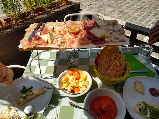 Read moreSiamo andati a pranzo in quattro, location in centro al paese, molto carina, con personale cordiale, sempre col sorriso. Abbiamo iniziato con un antipasto di affettati con due fettine di 2 tipi di formaggio diversi, un unico tagliere da €39, accompagnato da Piadina fatta con diverse farine e pane. Come porzione per noi è stata sufficiente anche se Il prezzo è un tantino alto. Il salame non è piaciuto. Abbiamo proseguito con 4 primi di cui due tagliatelle al ragù, uno strozzaprete al ragù, 1 strozzaprete vongole e pomodorini. Gli strozzapreti troppo grossi hanno un gusto particolare dovuto alla farina di grani antichi, possono non piacere, fatti più piccoli e mangiati assieme al sugo diventano più gradevoli. Purtroppo era tutto MOLTO SALATO.Infine 2 dolci, una crostata ed una cheesecake. Mezzo litro di vino rosso e acqua. € 120. Nel complesso esperienza positiva nel trovare qualità della materia prima e locale accogliente. Nonostante siamo abituati a questi Sapori perché a casa mangiamo abitualmente prodotti biologici e usiamo farine di grani antichi, non so...